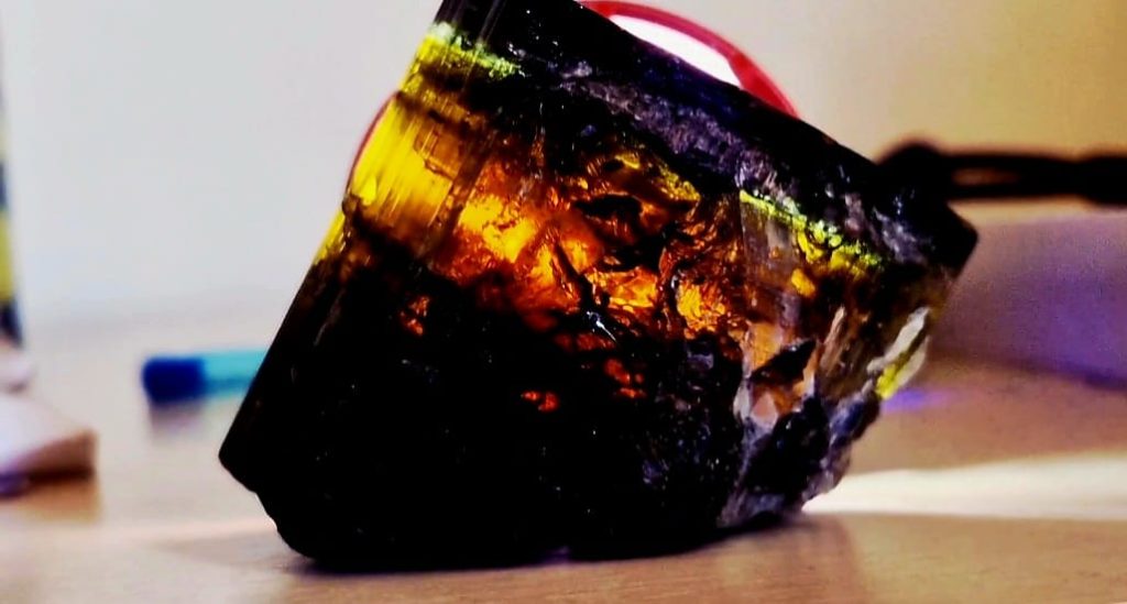 A presença de manganês, ferro e outros elementos traço é responsável pelas variações cromáticas dentro do mesmo cristal.